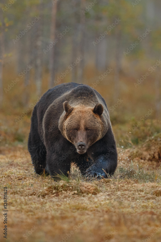 Brown bear in the nature habitat of finland land, finland wildlife, rare encounter, big predator, european wild nature, forest king