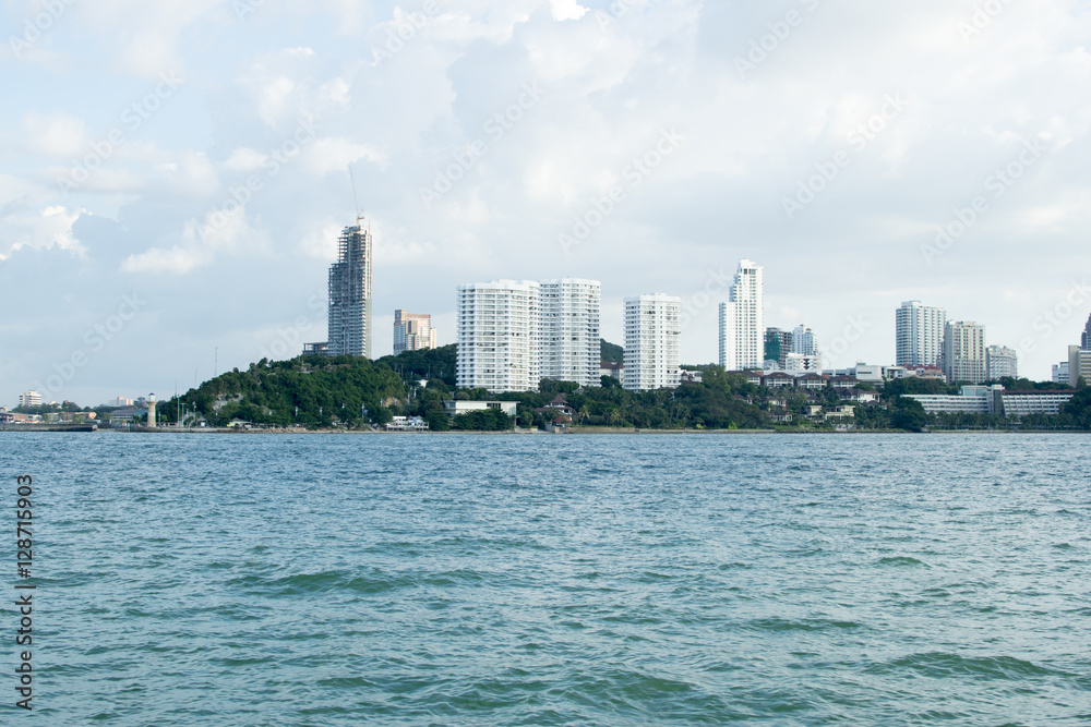 Pattaya, Thailand. Wide vied of city and Condominium Buildings,