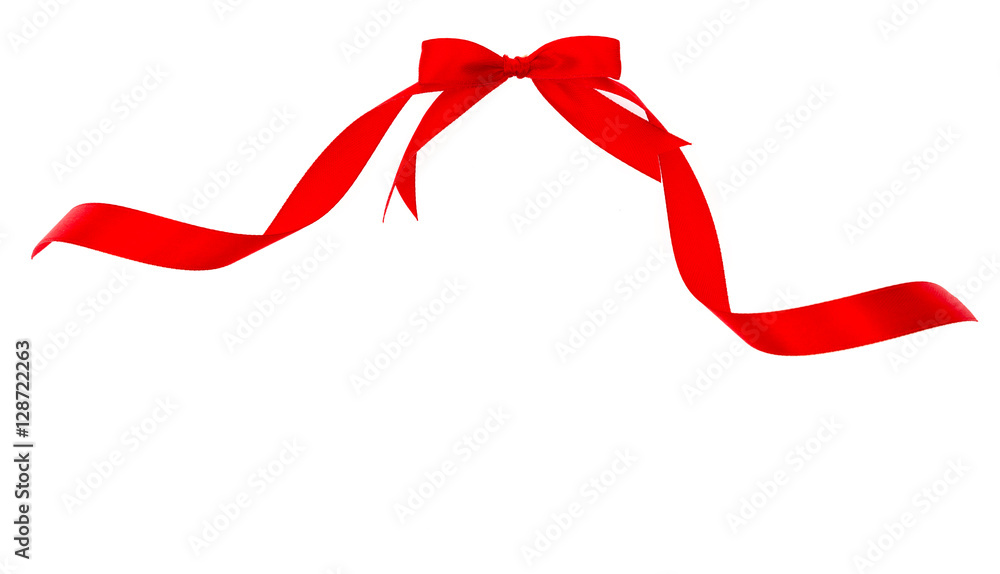 Shiny red ribbon on white background with copy space.