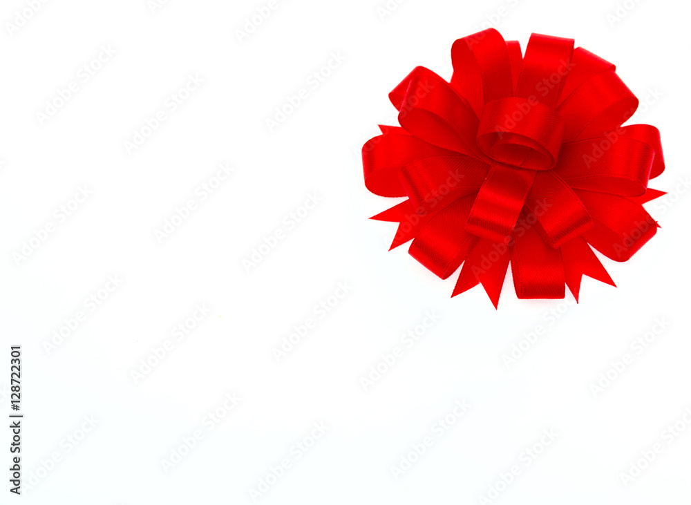 Shiny red ribbon on white background with copy space.
