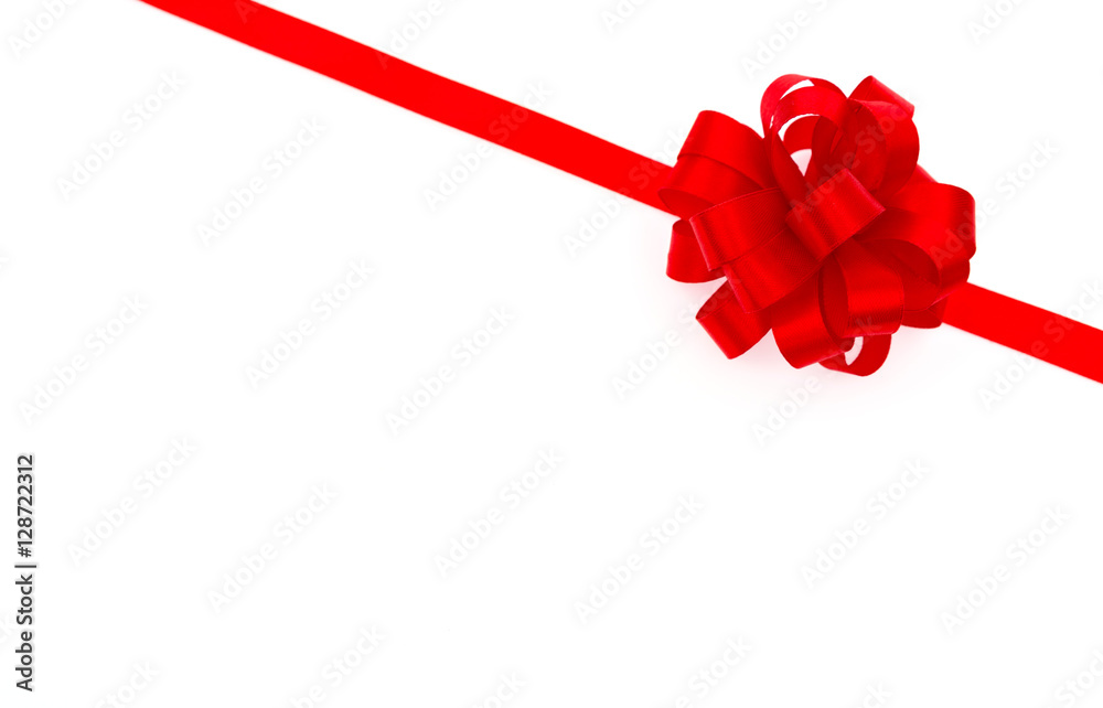 Shiny red ribbon on white background with copy space.