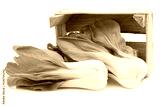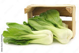 fresh Shanghai (small) paksoi in a wooden crate on a white background