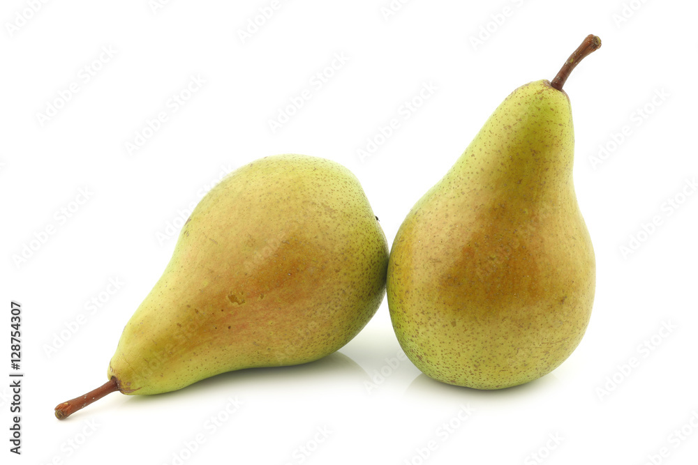 two fresh migo pears on a white background