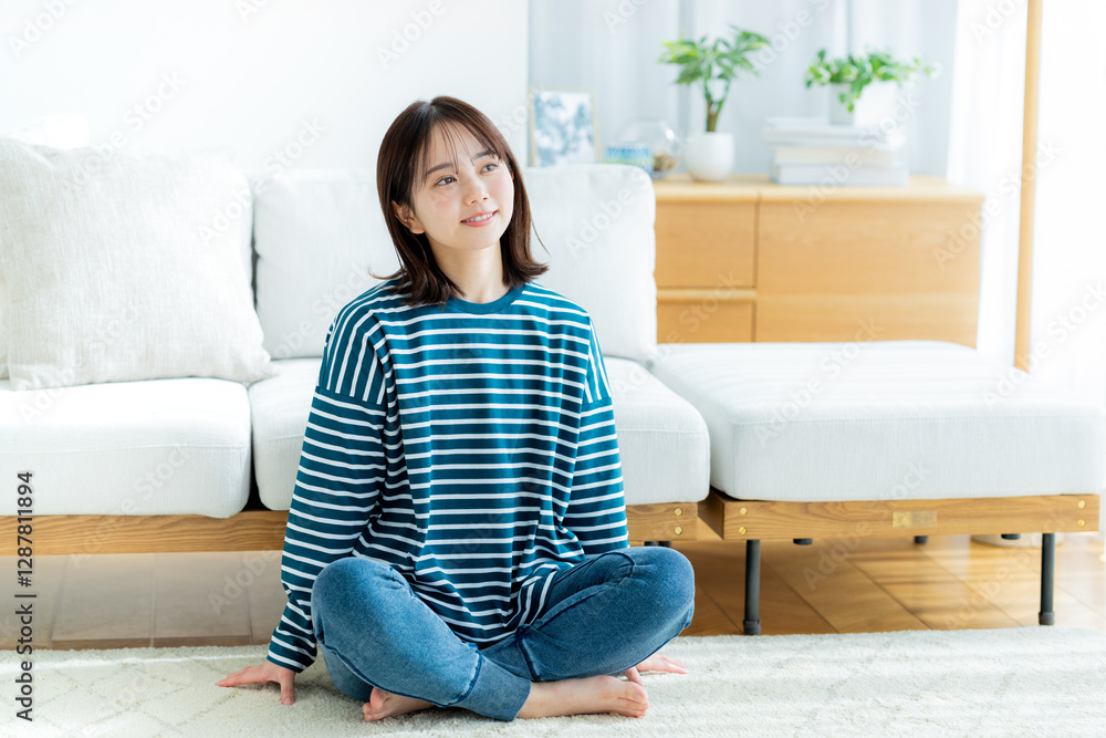 リビングでくつろぐ若い女性