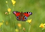 Portrait of the peacock butterfly. Insect close-up in nature. Aglais io. European peacock.