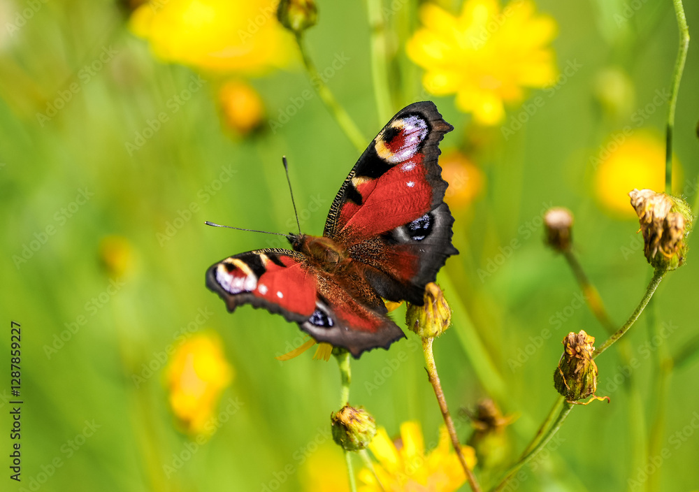 Portrait of the peacock butterfly. Insect close-up in nature. Aglais io. European peacock.