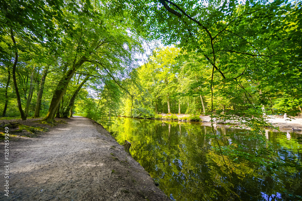 Views of the River Stever and the surrounding nature. Landscape on the tributary of the Lippe.