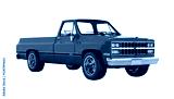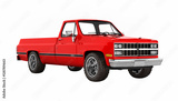Red pickup truck without shadow perspective view on white 3d