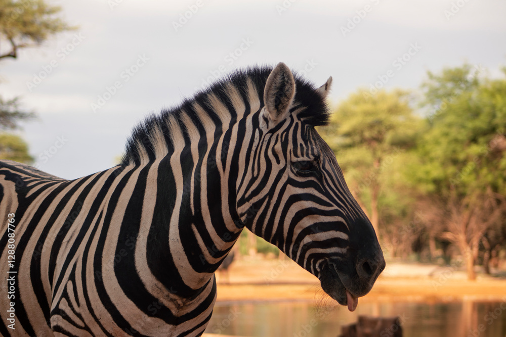 Wild african life. Close up Namibian mountain zebra in the middle of the savannah.