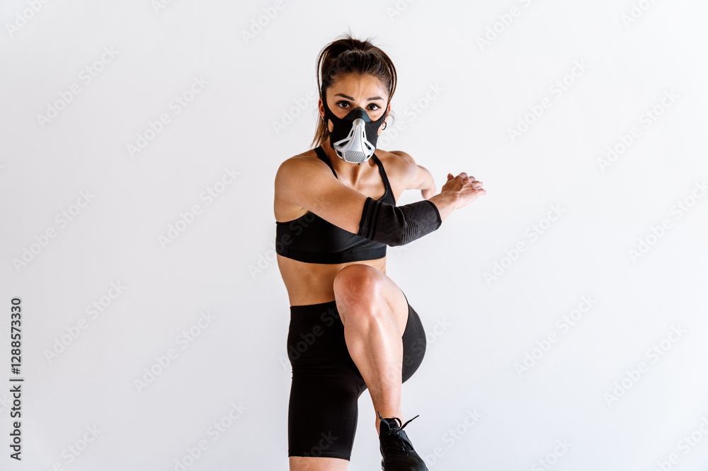 Young female athlete training in a gym using sport equipment