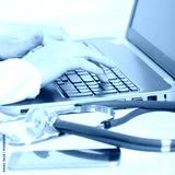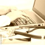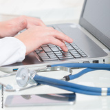 Medical doctor typing on laptop