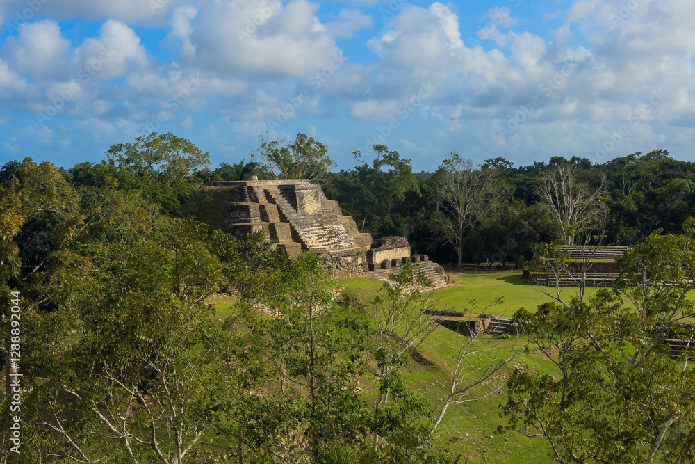 Exploring the ancient Altun Ha ruins in Belize surrounded by lush greenery