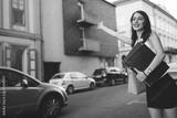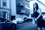 Happy businesswoman hailing taxi