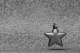 Small red Christmas star on glitter background