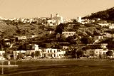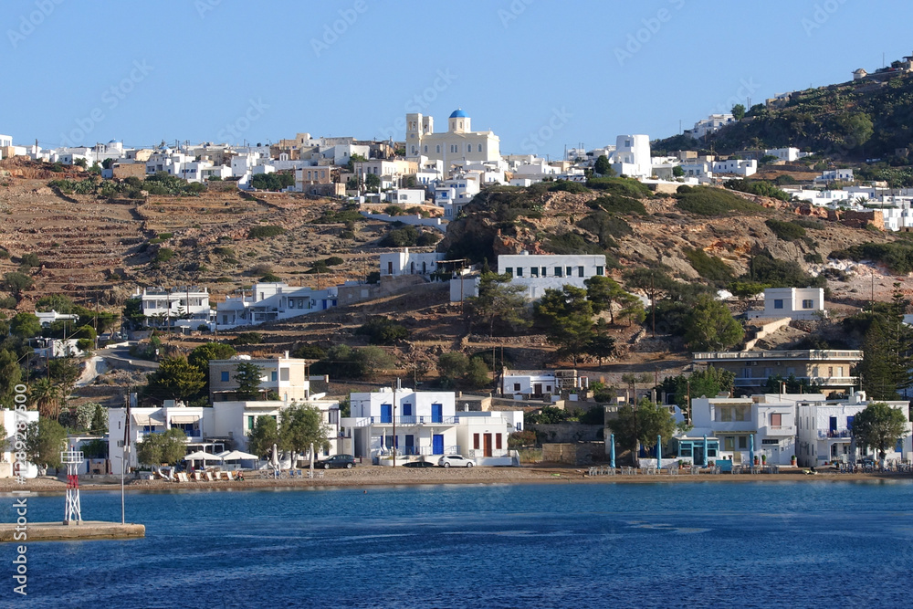 Small port of Psathi untouched by tourism built below picturesque hora of Kimolos island, Cyclades, Greece