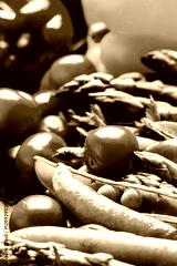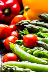 Fresh vegetables - asparagus, tomatoes, rosemary, green pea, bell pepper