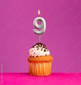 Birthday card on violet background - Candle number 9