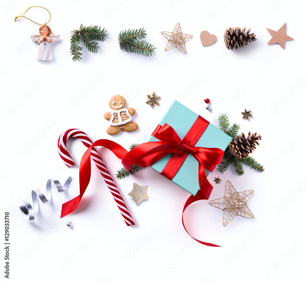 Christmas holiday Decoration; Christmas gift, fir tree branches