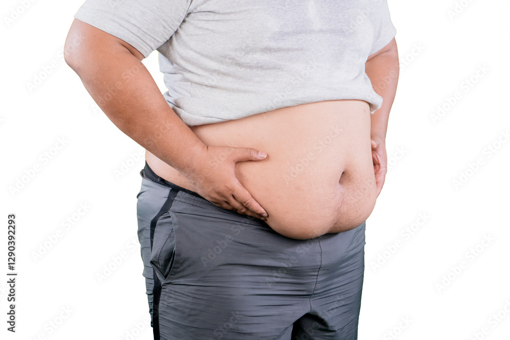 Overweight Man Holding His Belly Fat, Close-Up Front View