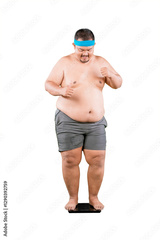 Happy Overweight Man Checking His Weight on a Scale, Celebrating Fitness Progress
