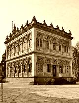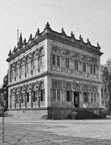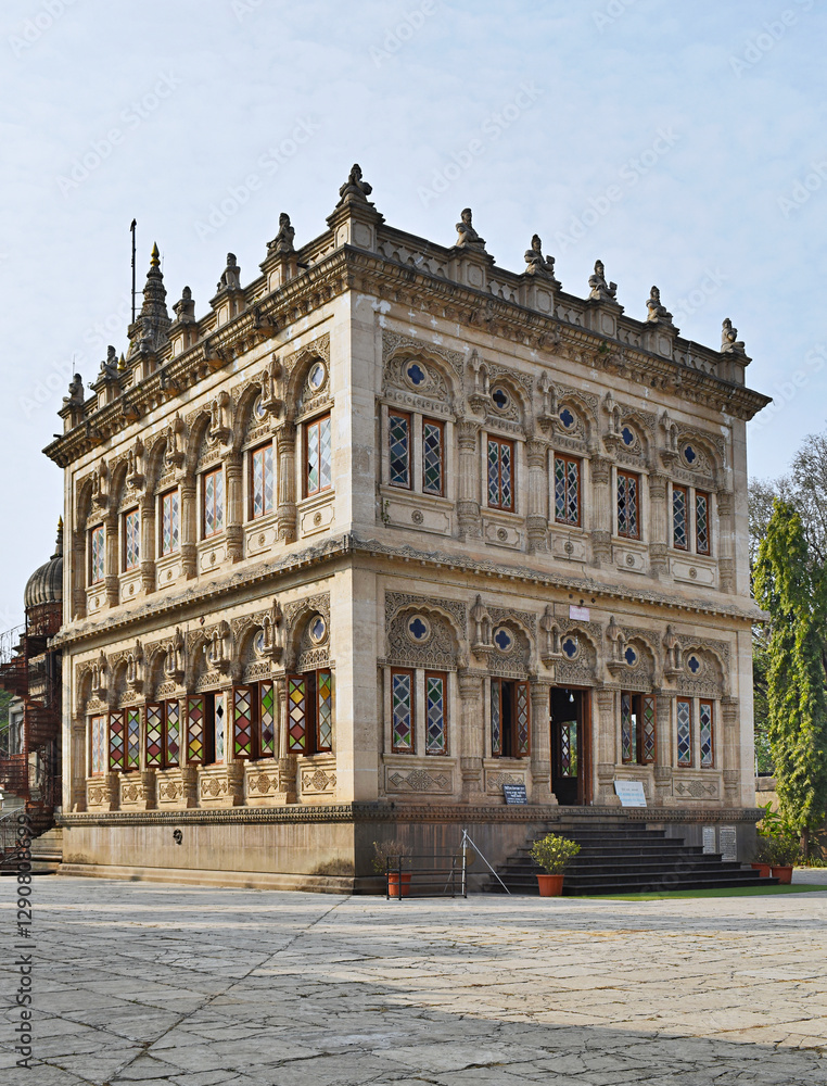 Mahadji Shinde Chhatri, a memorial for an 18th-century military leader, featuring a Hindu temple with Anglo-Rajasthani architecture, Pune, Maharashtra, India.