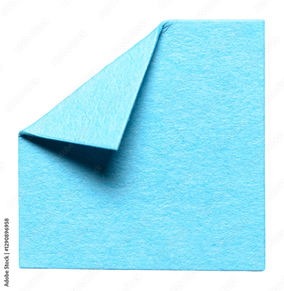Blue isolated cut out blank paper note cardboard with folded corner dog-ear earmark and copy space for text, transparent png background design element