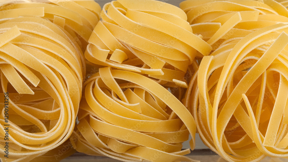 Italian pasta packaging window, Fettuccine pasta, close up, not cooked