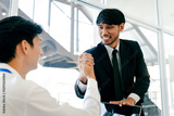 The concept of shaking hands of business partners coworkers holding hands Successful agreement after excellent meeting The scene is professional and friendly.