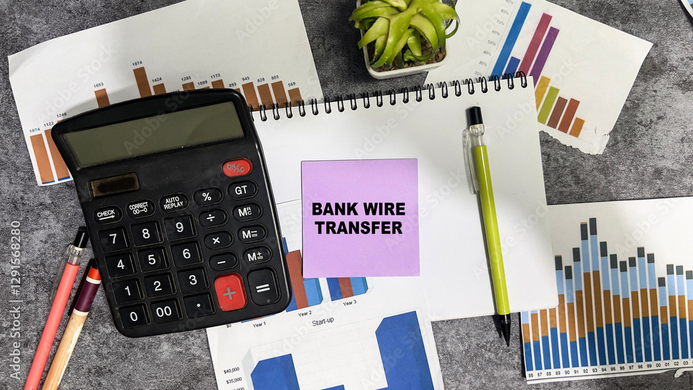 Concept of Bank Wire Transfer write on sticky notes isolated on Wooden Table.