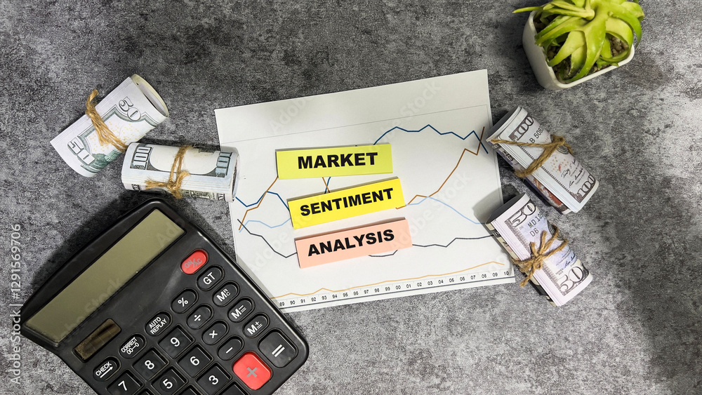 Concept of Market Sentiment Analysis write on sticky notes isolated on Wooden Table.