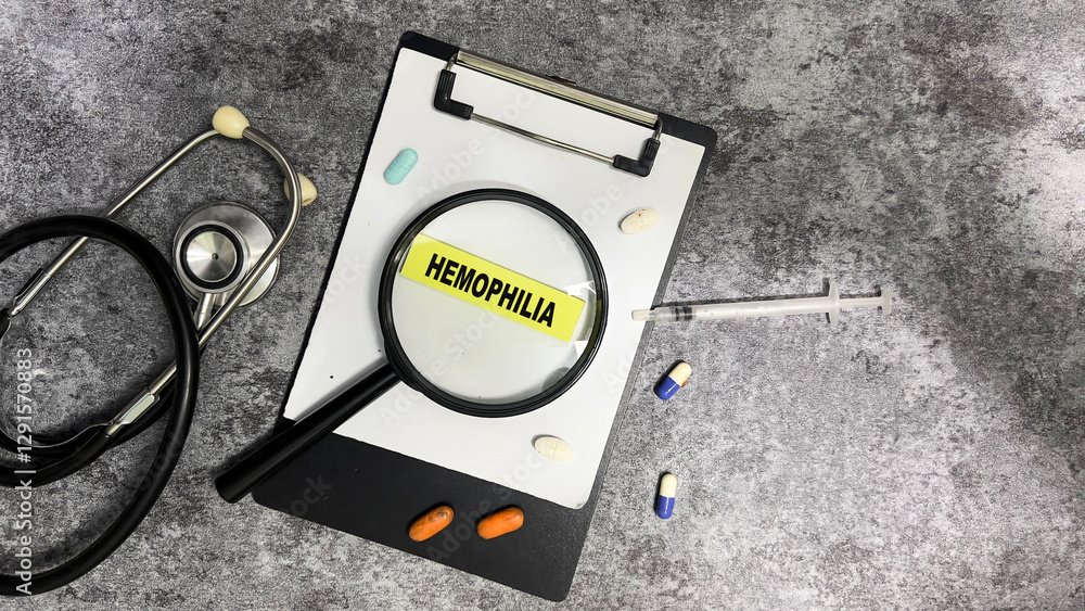 Concept of Hemophilia write on sticky notes isolated on Wooden Table.