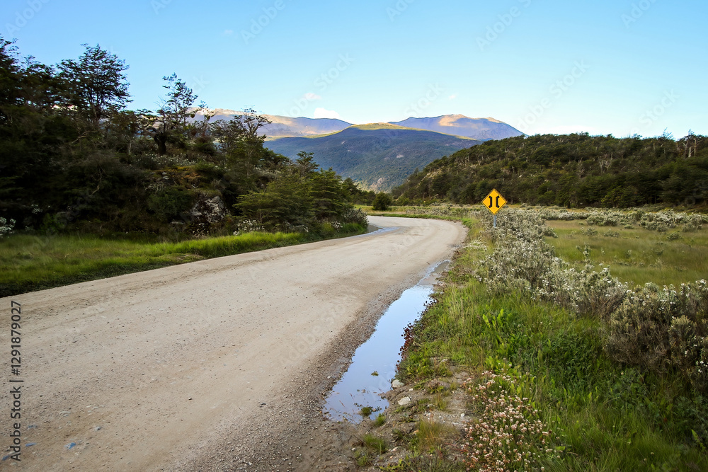 Dirt road in the Tierra del Fuego National Park near Ushuaia in the southernmost point of Argentina, South America