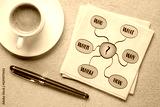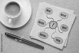Why, how, who, what, when and where questions - uncertainty, brainstorming or decision making concept.