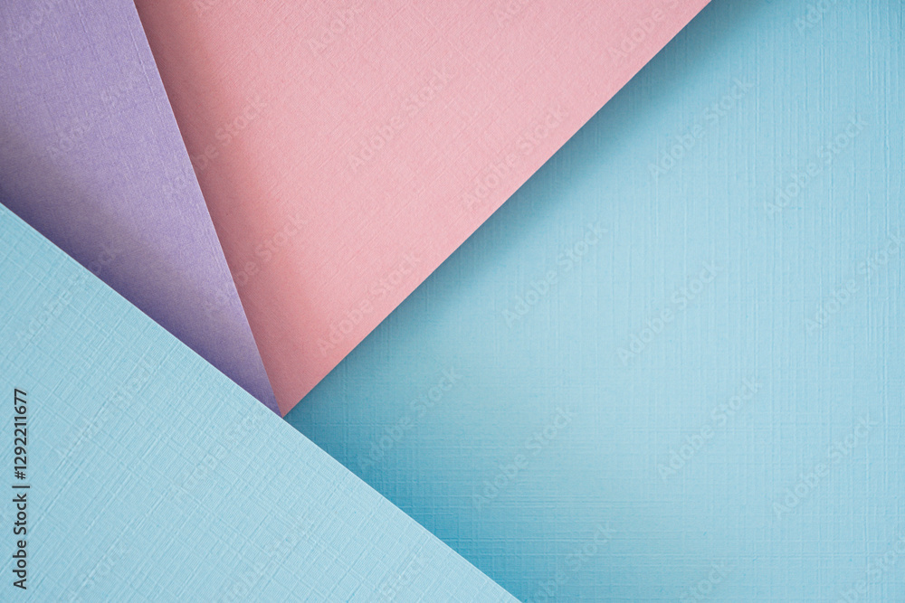 Abstract geometric paper background. Light blue, purple and pastel pink colors flat lay composition background