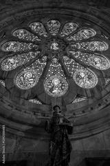 Historical rose window of Lisbon Cathedral, or simply the Se (Se de Lisboa), the oldest church in Lisbon, Portugal, built in 1147