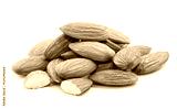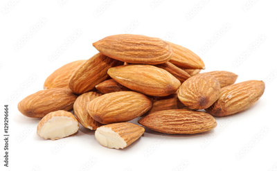 Heap of almond nuts isolated on white background