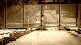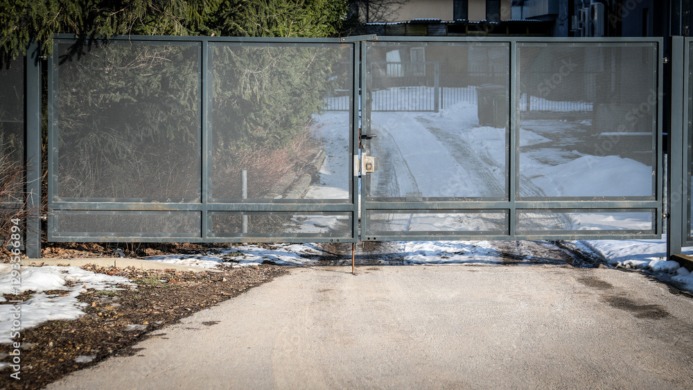 Locked territory gates. Fence in industrial zone