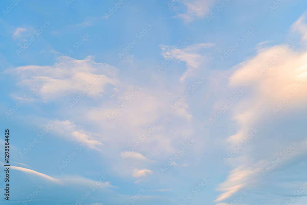 Beautiful wispy clouds illuminate the serene blue sky at twilight
