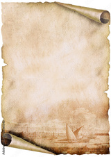 Altes Papier, Papyrusrolle mit historischem Hafenmotiv