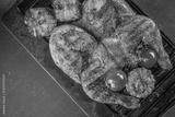 Fried chicken with fresh herbs. Tobacco chicken on a dark background. Georgian dish. top view. copy space.