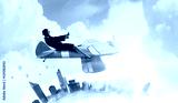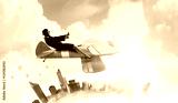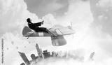 Woman in drawn airplane . Mixed media