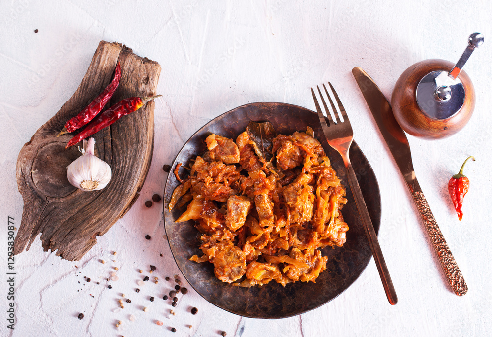 Stewed or braised cabbage served in a plate