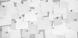 Empty blank sticky notes on notice board in office. Background or backdrop for business information. Concept image of communication or reminder with copy space.