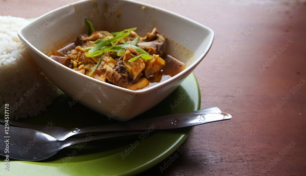 rica rica chicken, stir-fried chicken in soy sauce served with white rice, perfect for breakfast or dinner