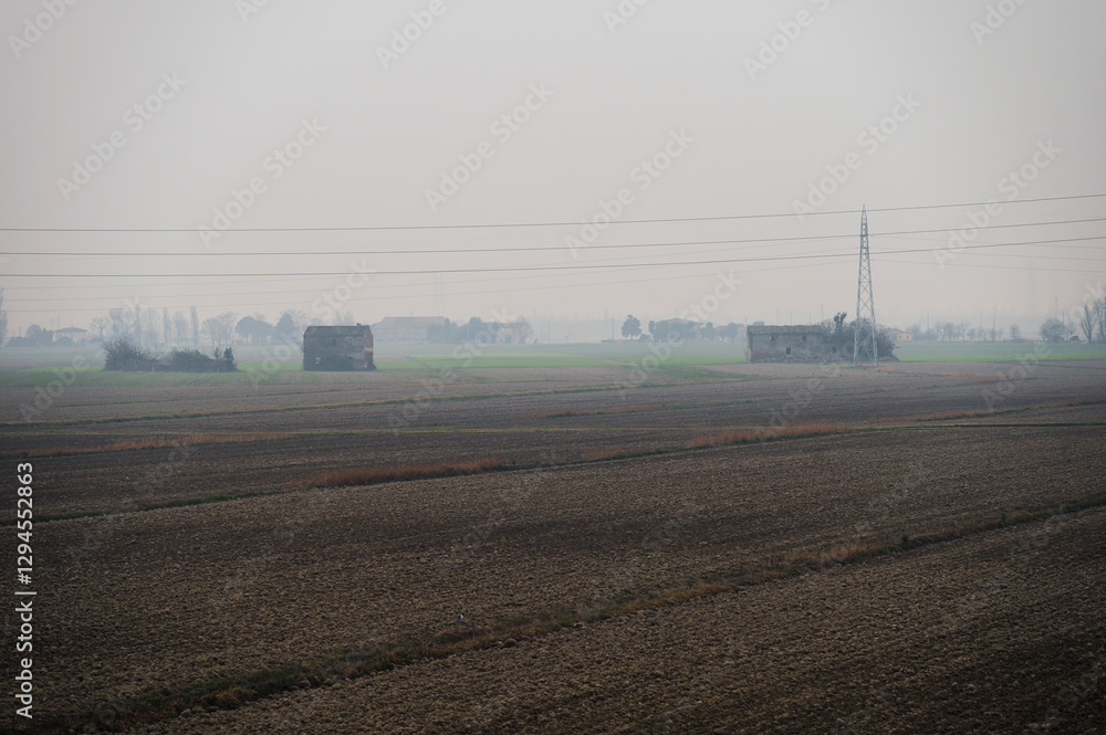 the river Po inside its Veneto side Delta during a winter season, Rovigo, Italy