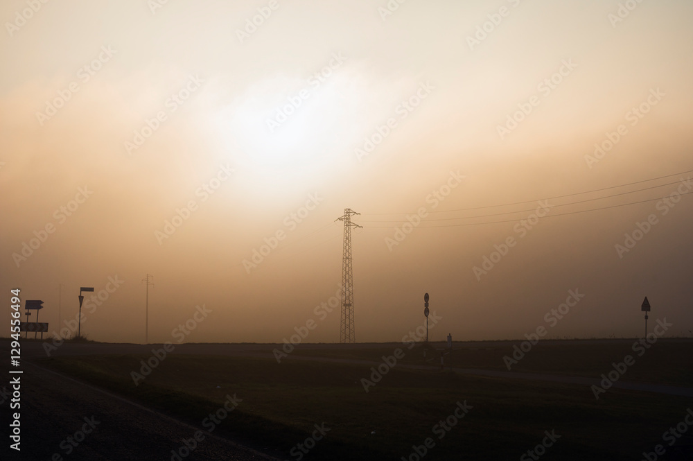 the river Po inside its Veneto side Delta during a winter season, Rovigo, Italy
