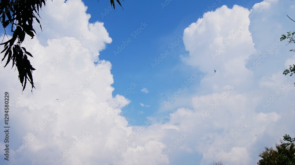 beautiful blue sky with white clouds, looks natural and suitable for background