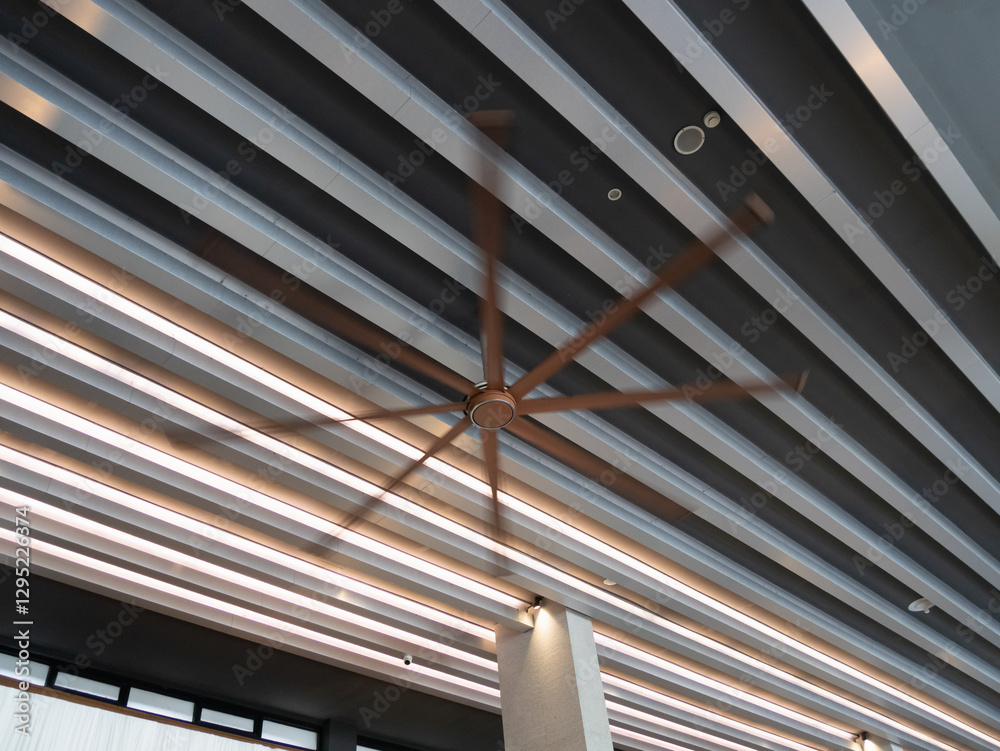 Ceiling fan modern space indoor design contemporary low angle view airflow concept