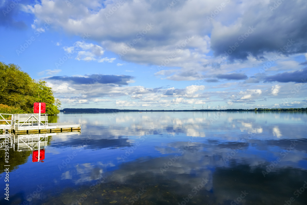 View of the Wittensee near Rendsburg in Eckernförde and the surrounding landscape. Nature by the lake.