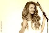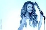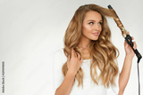 Curly Hair. Beautiful Woman Curling Long Wavy Hair With Iron